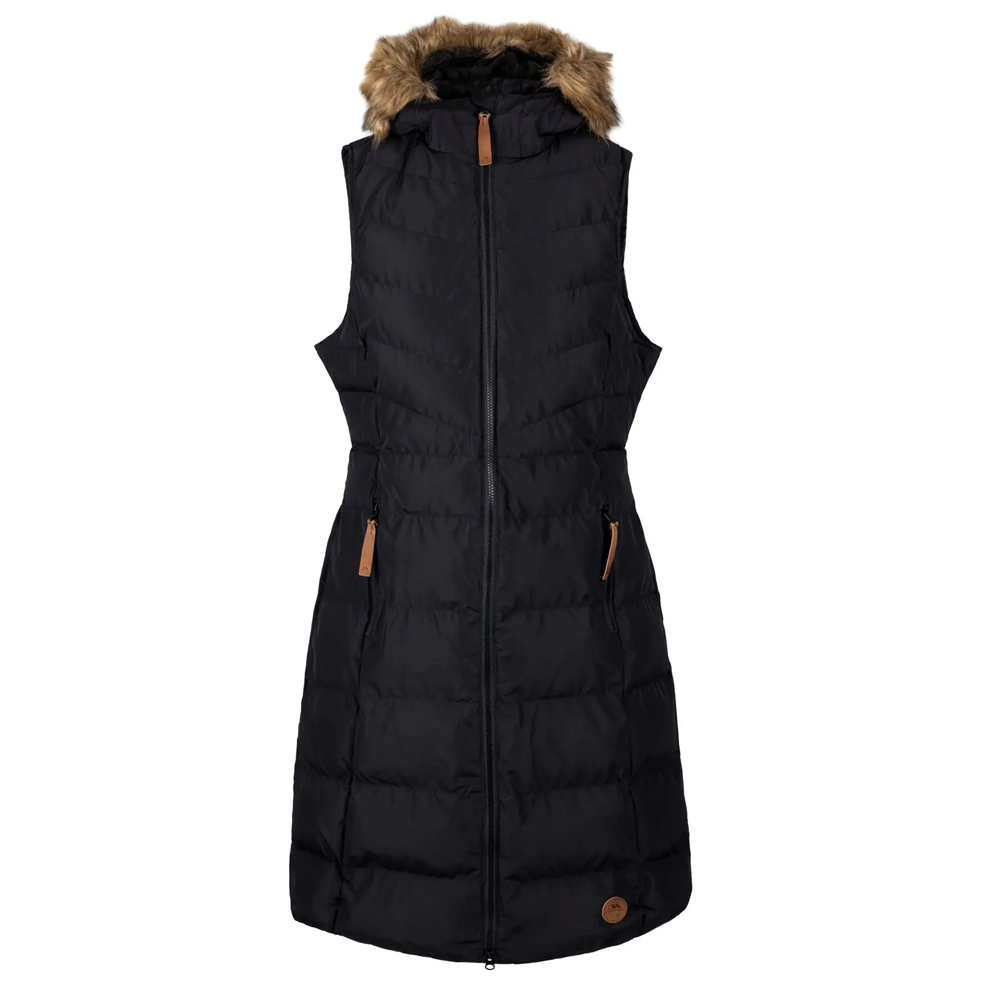 Material: 100% Polyester. Shell: TPU Membrane. Fabric: Woven. Design: Quilted. Trim: Faux Fur. Fabric Technology: Waterproof, Windproof. Badge. Neckline: Hooded. Sleeve-Type: Sleeveless. Hood Features: Grown On Hood. Length: Long. Pockets: 2 Front Pockets, Zip. Fastening: Two Way Zip. Waterproof Rating: 2000mm.