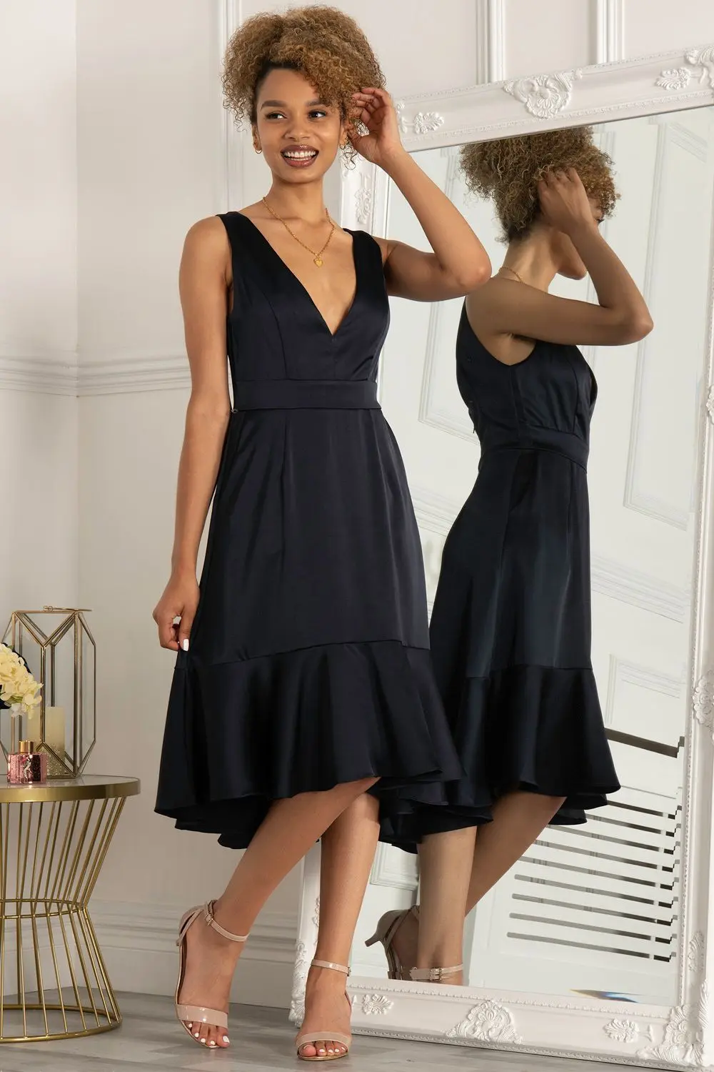 Jolie Moi Women's Annabeth V Neck Flare Dress in Navy