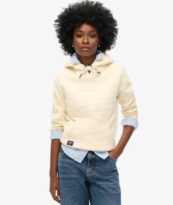 Superdry Women's Embossed Graphic Hoodie Cream / Rice White -
