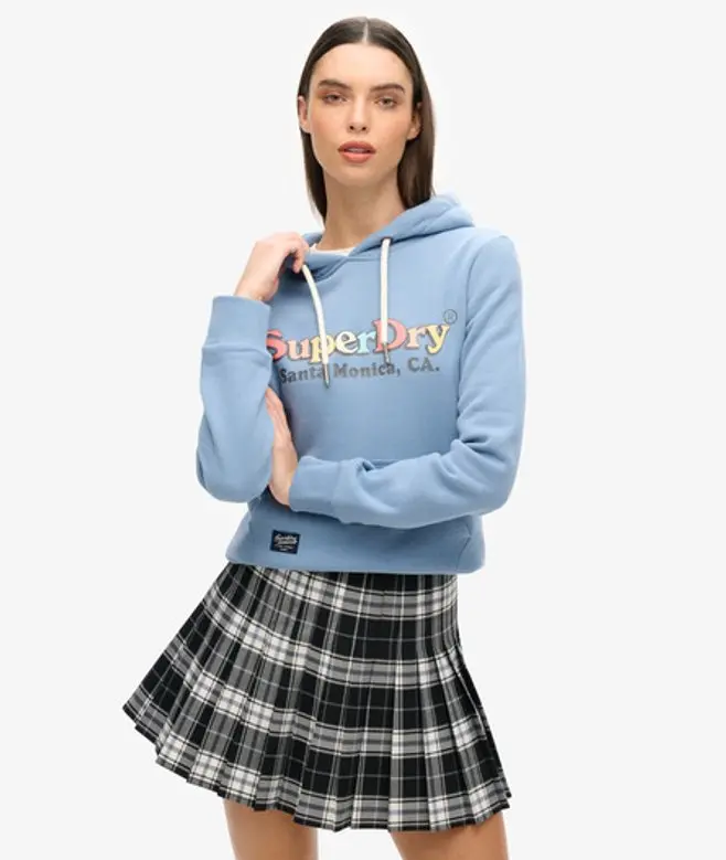 Superdry Women's Rainbow Logo Graphic Hoodie Light Blue / Tidal Blue -