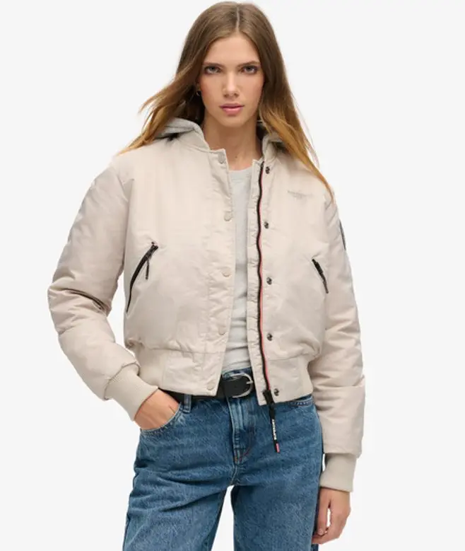 Superdry Women's Hooded Bomber Jacket Beige / Chateau Beige -
