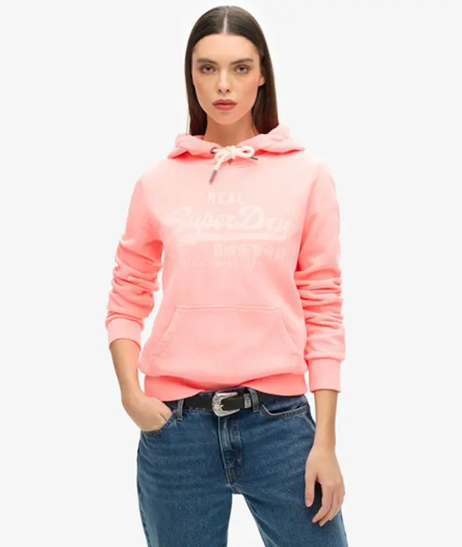 Superdry Ladies Classic Graphic Print Neon Hoodie, Cream,