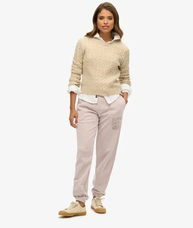 Superdry Ladies Loose Fit Graphic Print Vintage Washed Jogger, Grey,