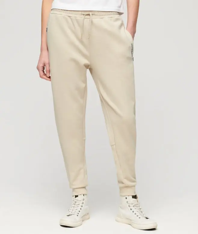 Superdry Ladies Lightweight Logo Print Sports Tech Slim Joggers, Beige,