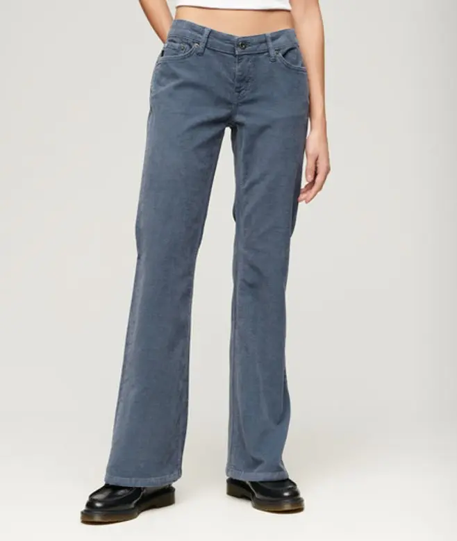Superdry Women's Low Rise Cord Flare Jeans Blue / Washed Denim Blue -