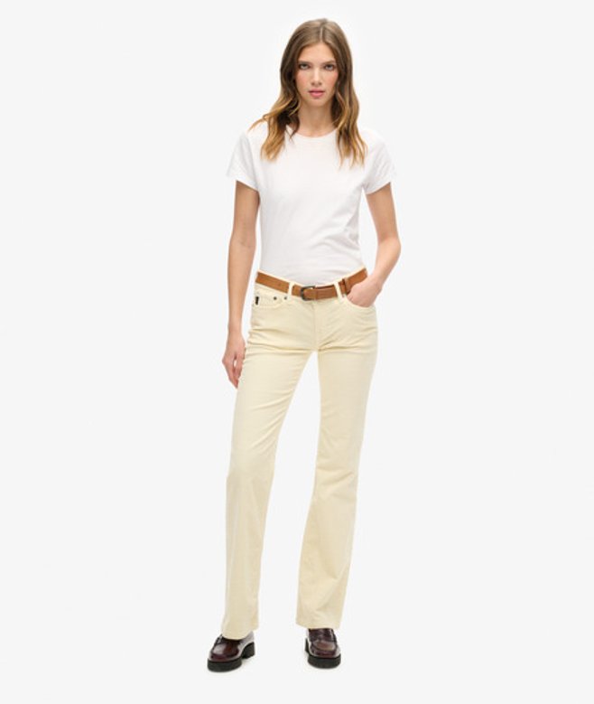 Superdry Women's Low Rise Cord Flare Jeans Cream / Oyster -