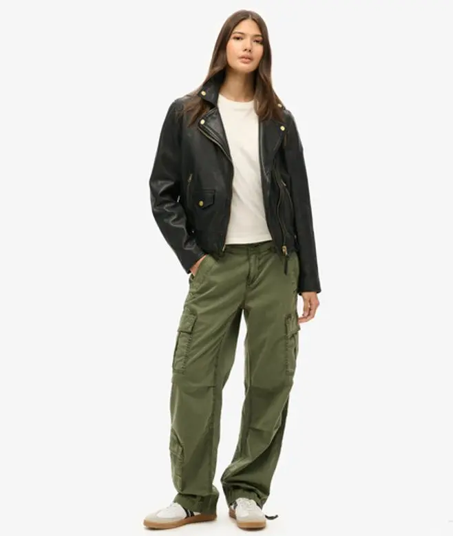 Superdry Ladies Loose Fit Low Rise Straight Cargo Pants, Green,