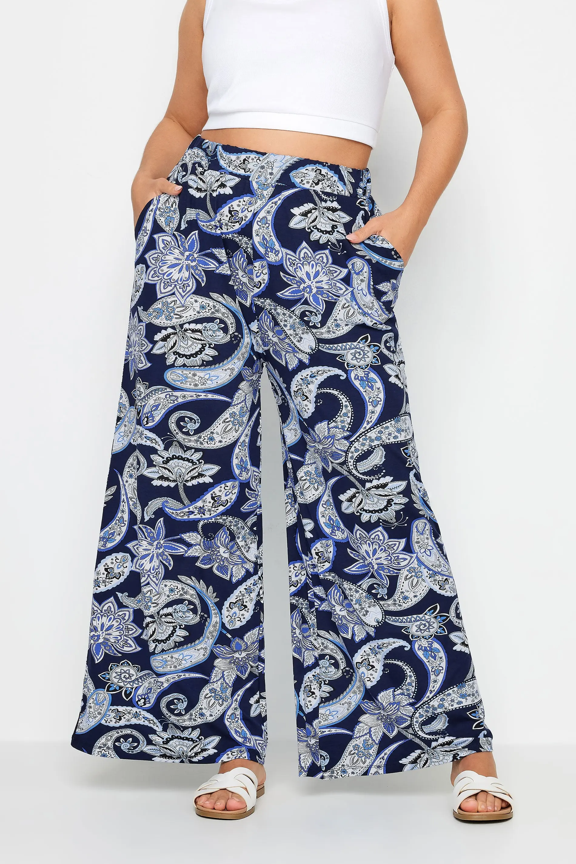 Yours Plus Size Blue Paisley Print Wide Leg Trouser Size 34-36