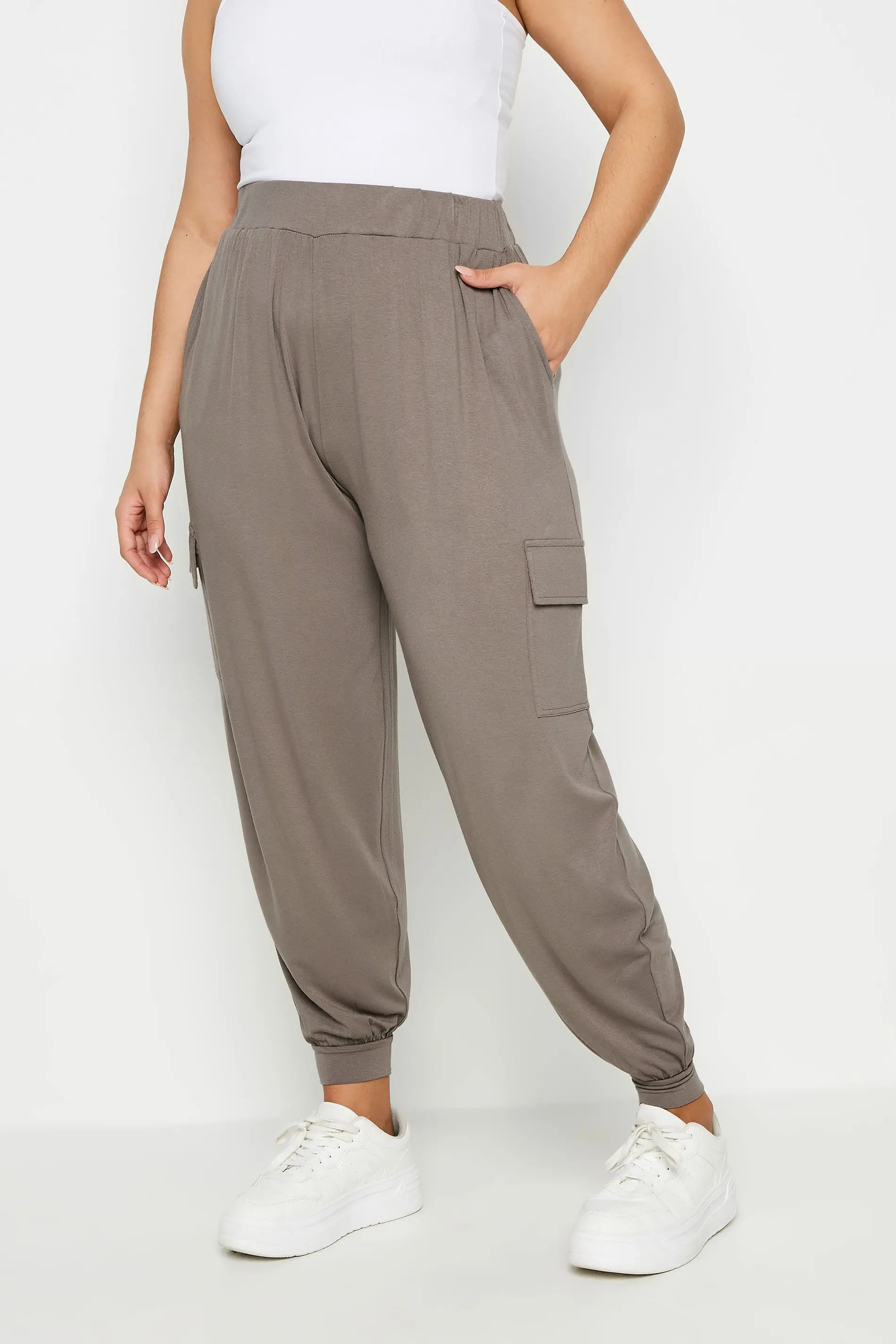Yours Plus Size Brown Cargo Pocket Harem Joggers Size 34-36