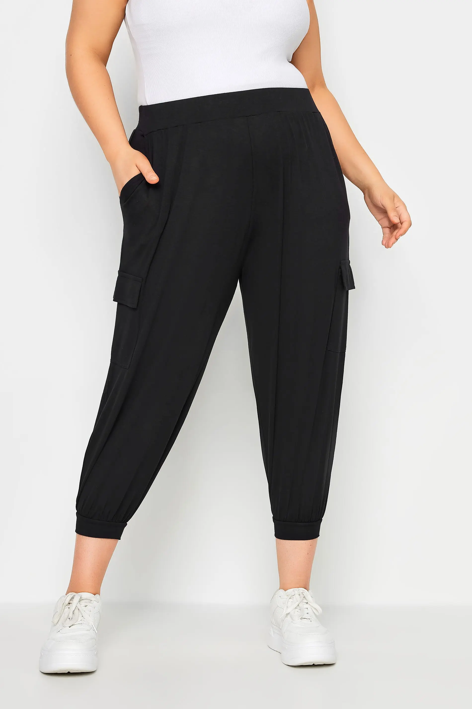 Yours Plus Size Black Cropped Cargo Harem Trousers Size 30-32