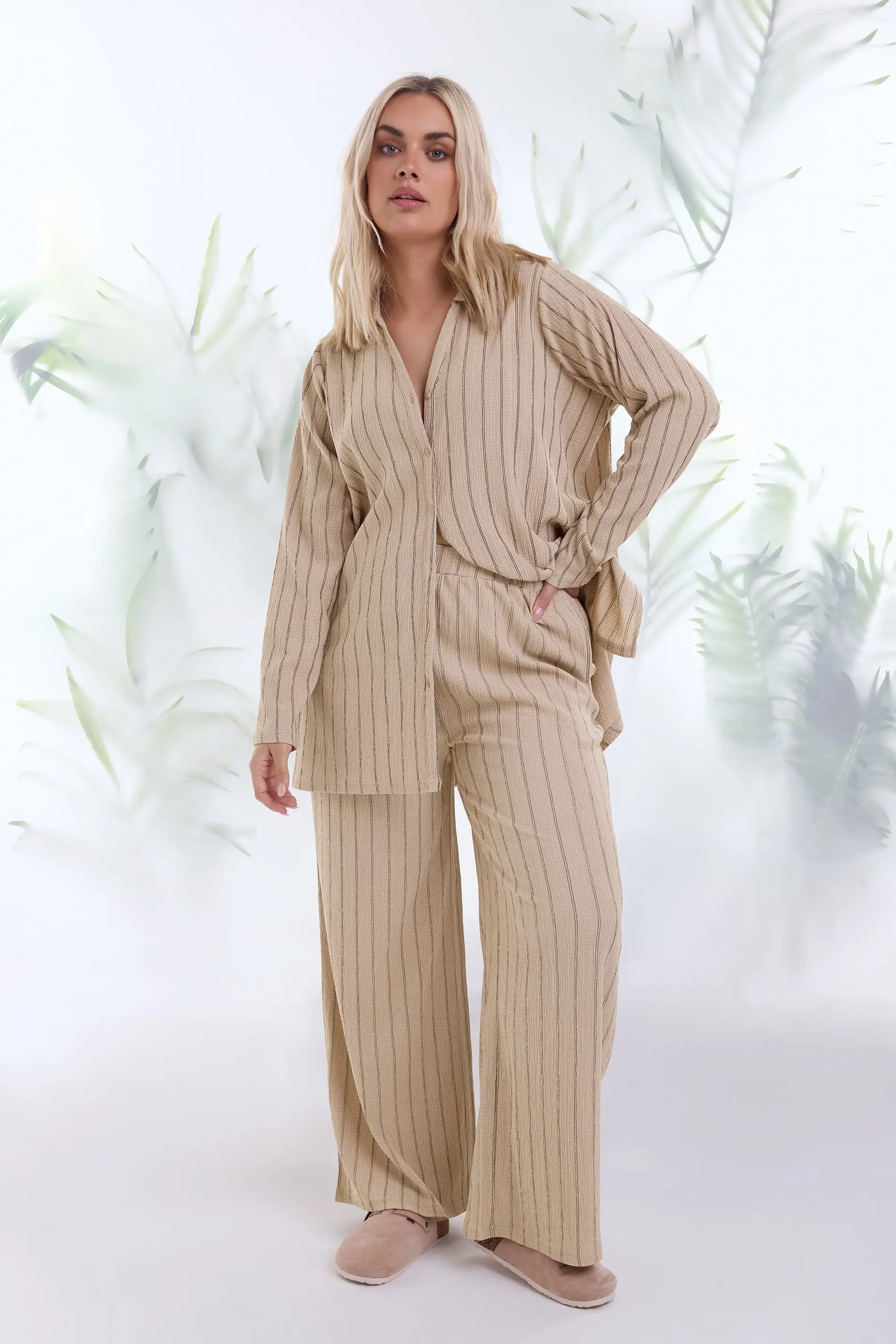 Yours Plus Size Natural Brown Textured Pinstripe Wide Leg Trousers Size 22-24