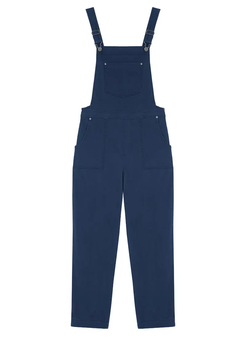 Overall(s), we think these dungarees might be our favourite ones yet. The Leanne Dungarees are crafted from super-soft navy blue cotton with a hint of added stretch for comfort and feature adjustable shoulder straps and a side zip fastening with a hidden internal button, a retro high waistline, a tapered leg shape, a front patch pocket, pockets at the hip, and patch pockets to the rear. Abigail is 5'11 and is wearing a UK size 10Sha is 5'9.5 and is wearing a UK size 16Regular fit - take your usual sizeInside leg length: 70cmHigh waistTapered legSide zip fasteningPocketsFor specific measurements of this garment, please see the Size Guide.
