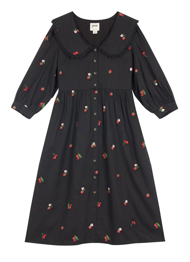 Joanie Clothing Rosanna Cherry Print Embroidered Peter Pan Collar Dress