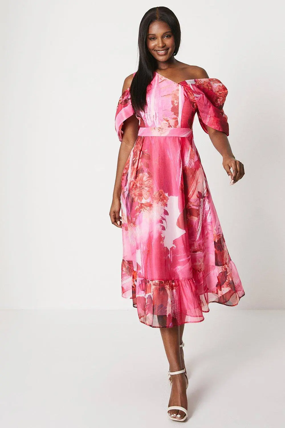 Coast Women's Off Shoulder Organza Midi Dress in Pink