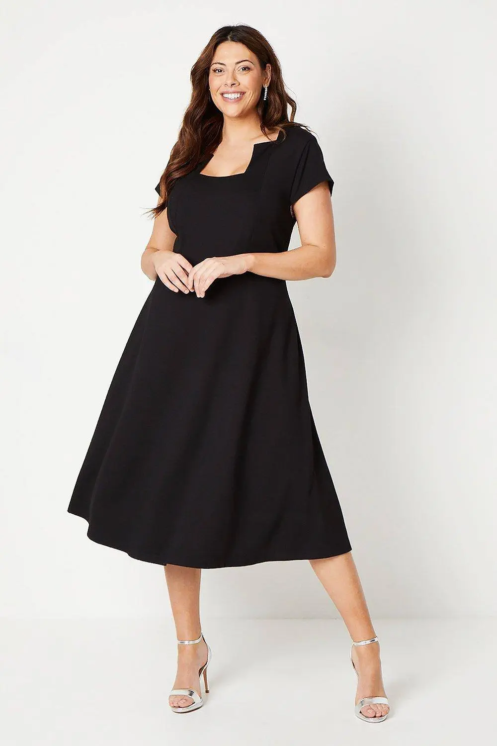 Coast Women's Plus Ponte Midi Dress With Square Neckline in Black