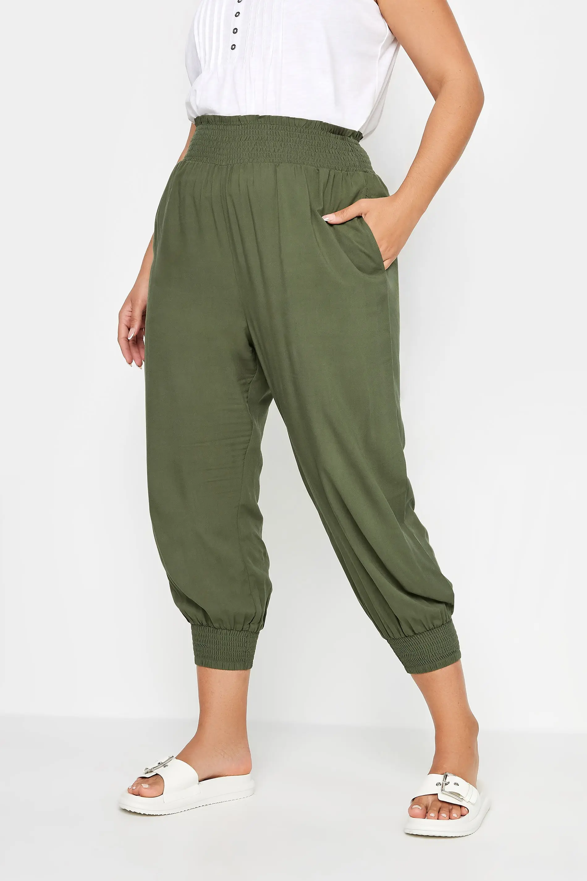 Yours Plus Size Khaki Green Shirred Harem Trousers Size 22-24